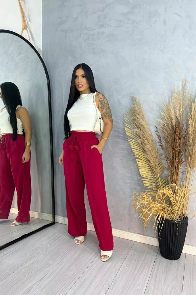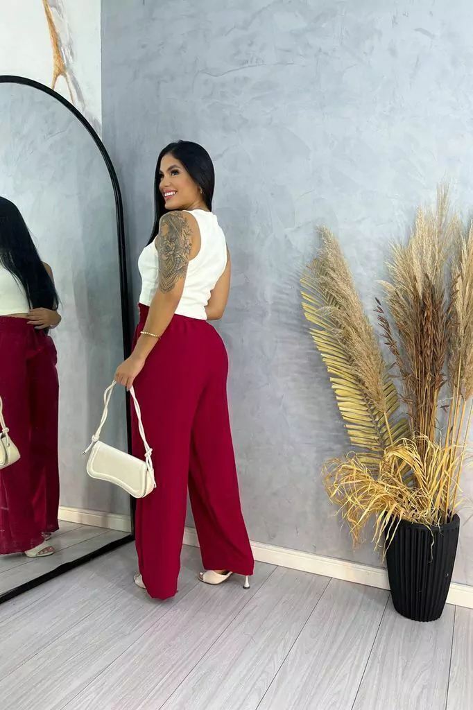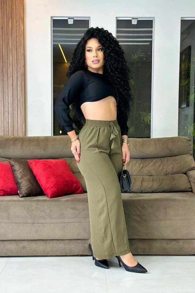 Conheça a Calça Pantalona Beatriz! Esta peça elegante é perfeita para quem busca conforto e estilo. Confeccionada em tecido crepê Duna forrado, ela oferece um caimento incrível e uma sensação suave na pele.