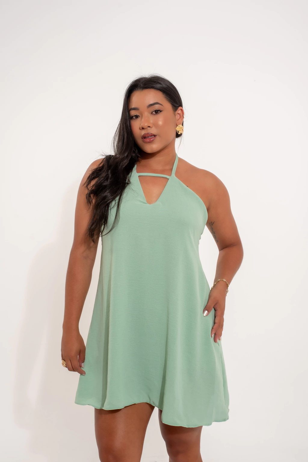 Fabricado em tecido Creppe Duna, este macaquinho oferece conforto e leveza, perfeito para compor looks incríveis. Disponível nos tamanhos 38 ao 44, ele se adapta a diferentes silhuetas, valorizando cada mulher.