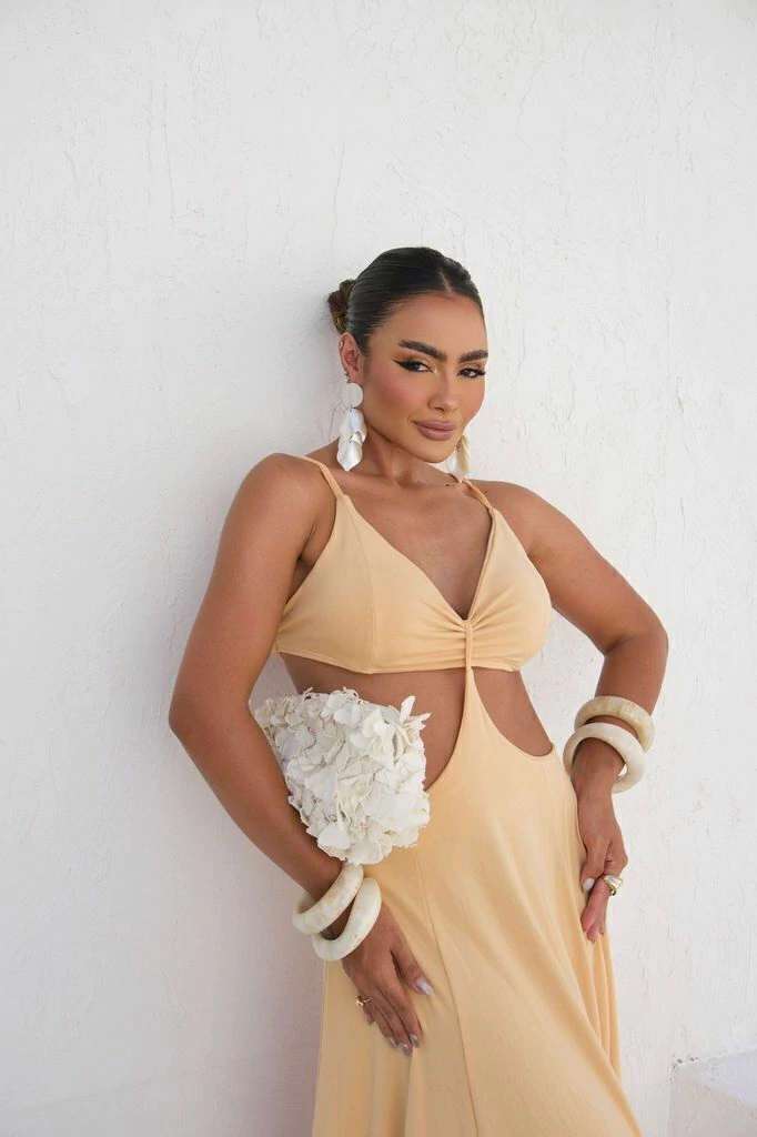 Encante-se com o Vestido Melin, uma peça única que traz sofisticação e conforto. Fabricado no tecido suede premium, este vestido longo destaca-se pelas tiras nas costas de amarração, proporcionando um toque especial ao visual.